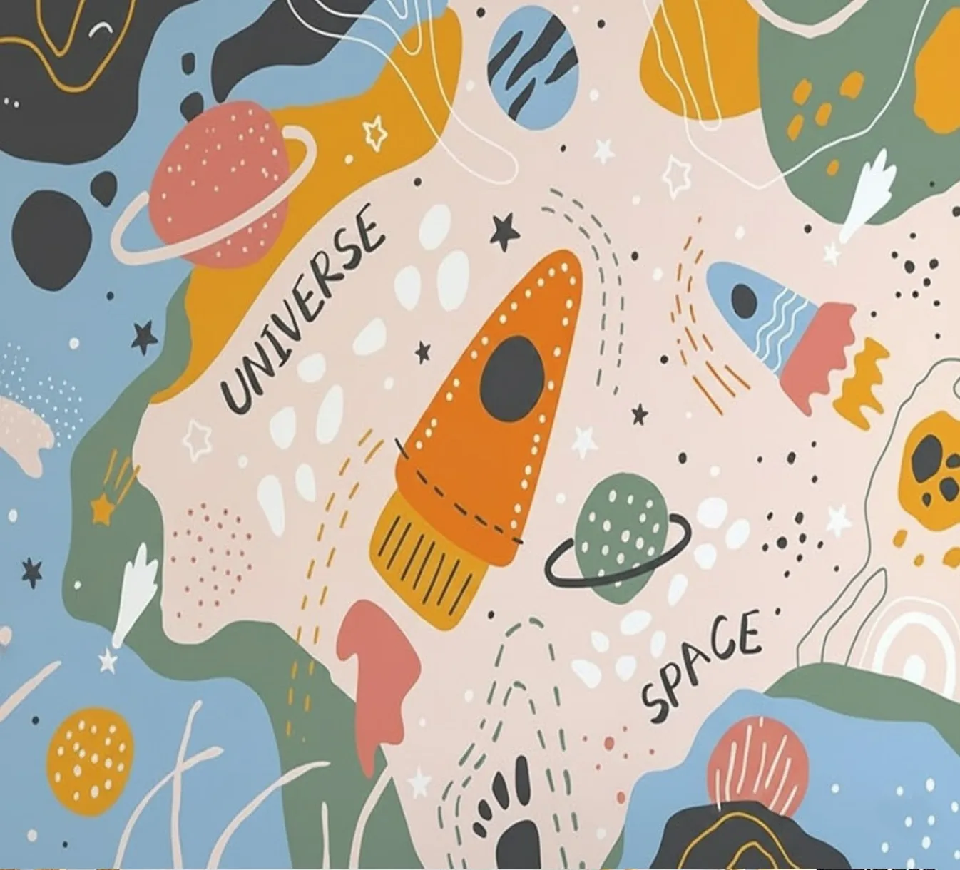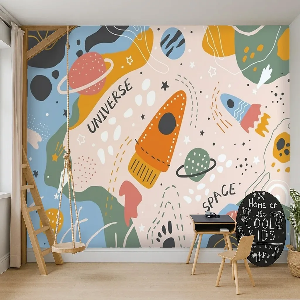 Abstract Retro Rocket & Universe Pattern Wallpaper Mural – Wallchic Dubai