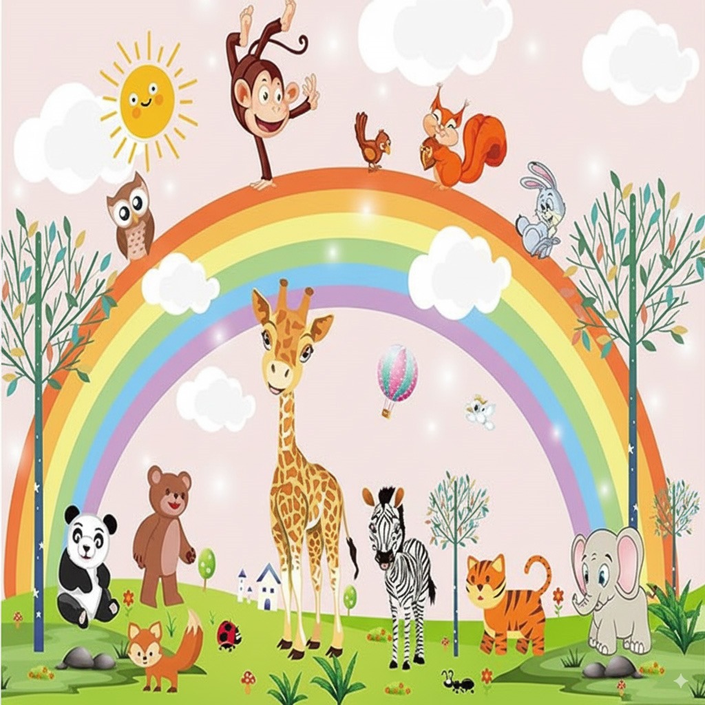 Bright Rainbow Happy Animals Wallpaper – Cheerful Kids Room Mural