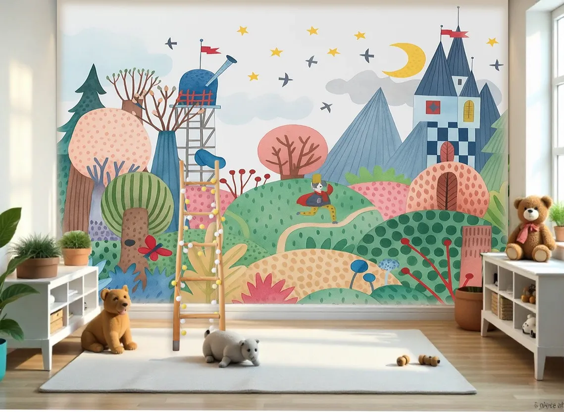 Colorful Fairytale Forest & Castle Kids Wallpaper Mural – Wallchic Dubai