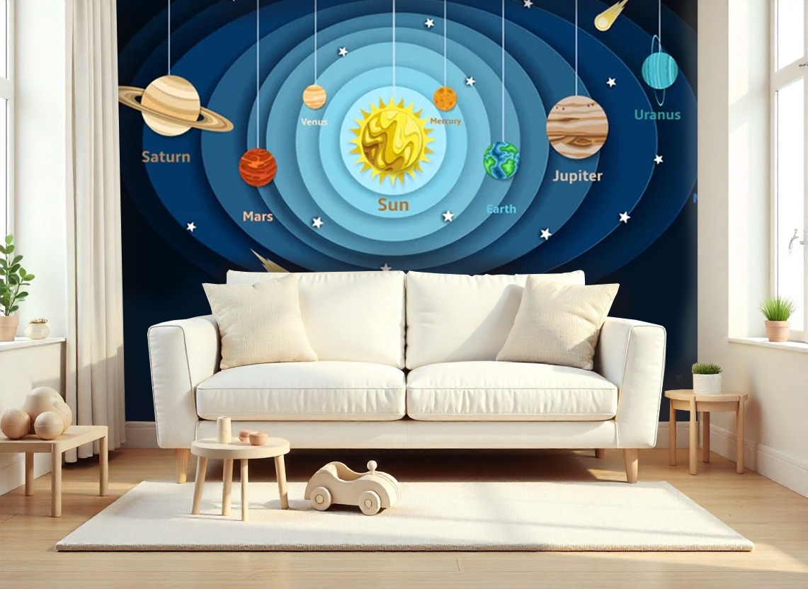 - Kids Paper Cut Solar System Wallpaper – Educational Space Mural