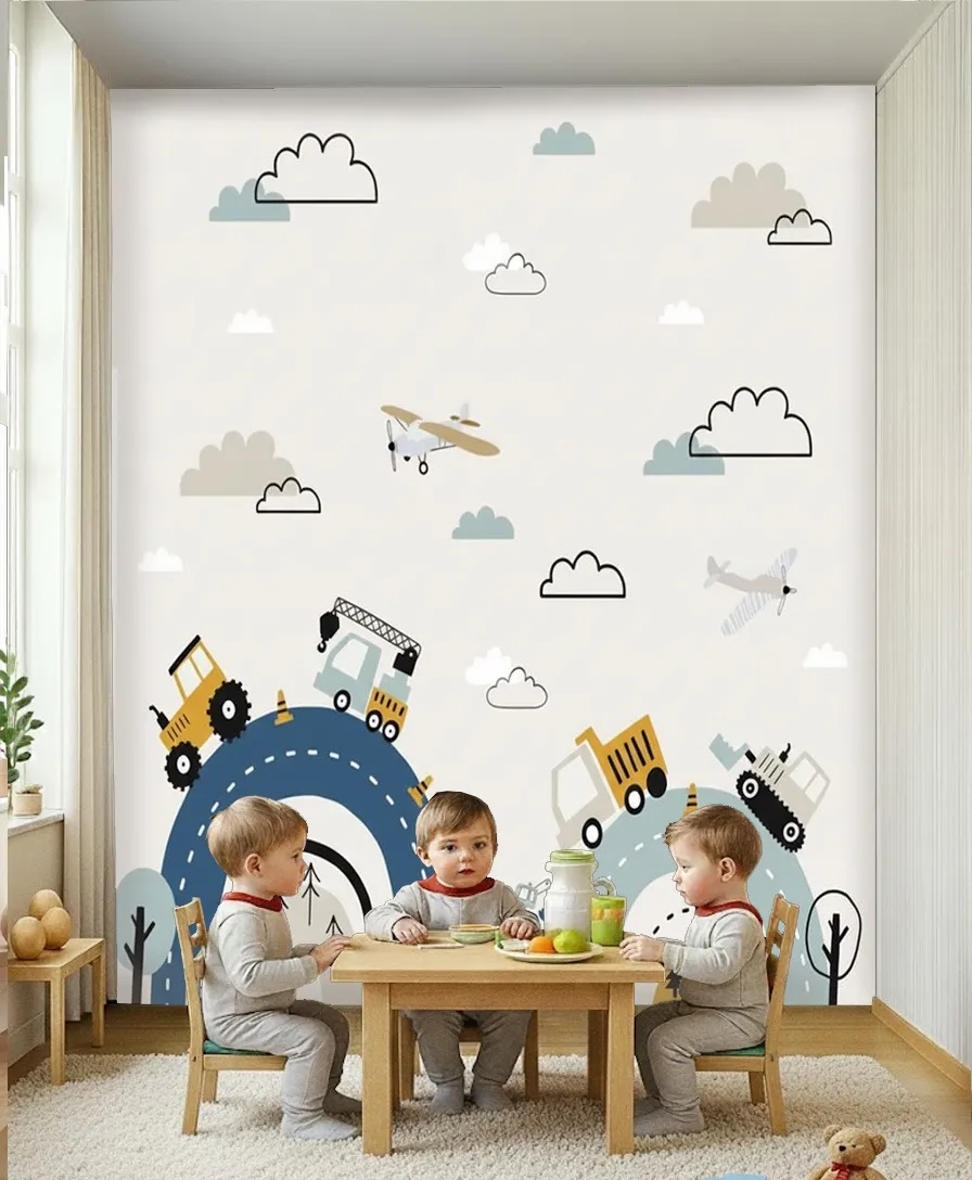- Minimalist Construction Vehicles Road Nursery Wallpaper Mural – Wallchic Dubai