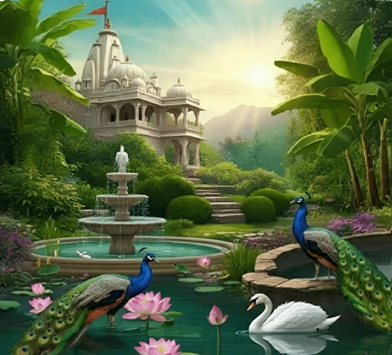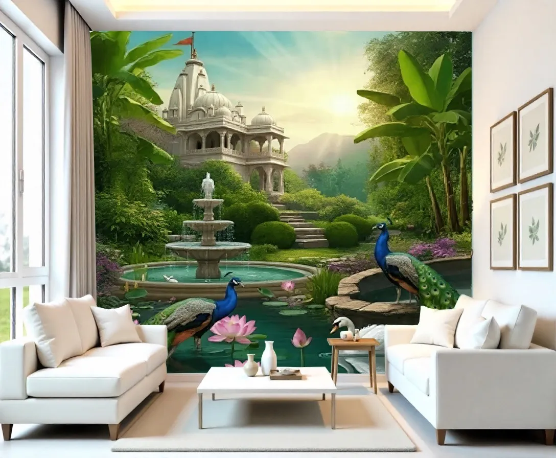 - Serene Indian Temple & Peacock Garden Wallpaper Mural – Wallchic Dubai