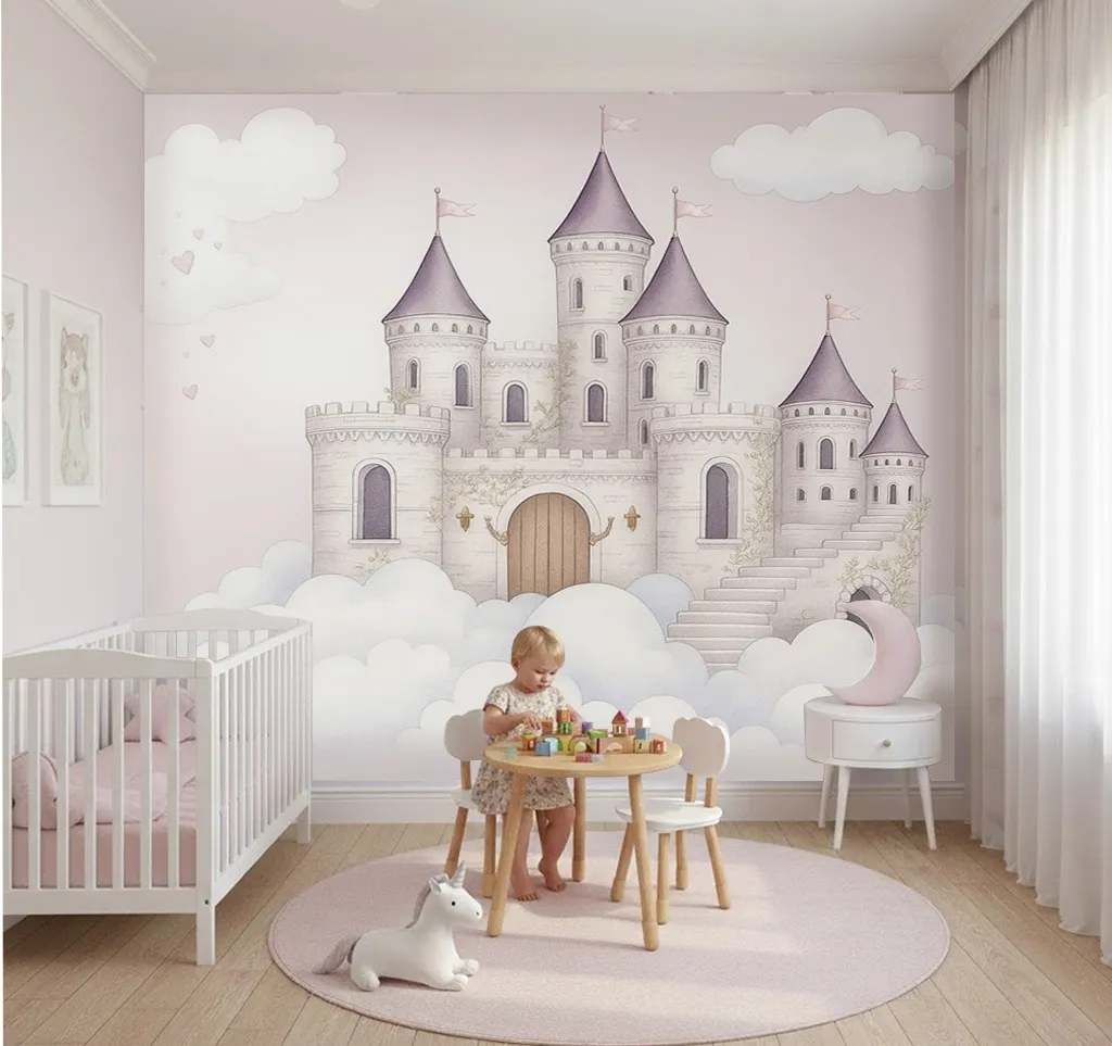 Soft Pink Princess Castle Dream Nursery Wallpaper Mural – Wallchic Dubai