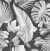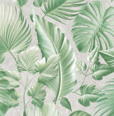 Lush palm leaf motifs in viridian tones bring an exotic, refreshing atmosphere.